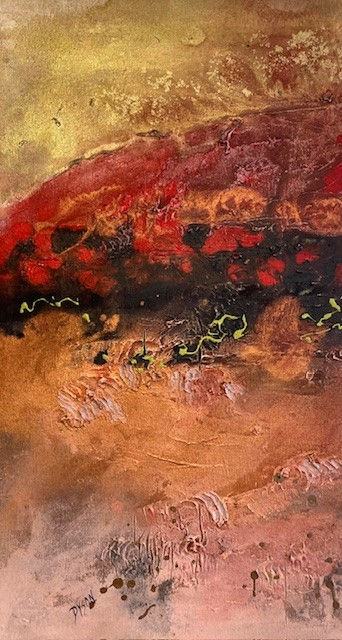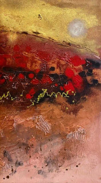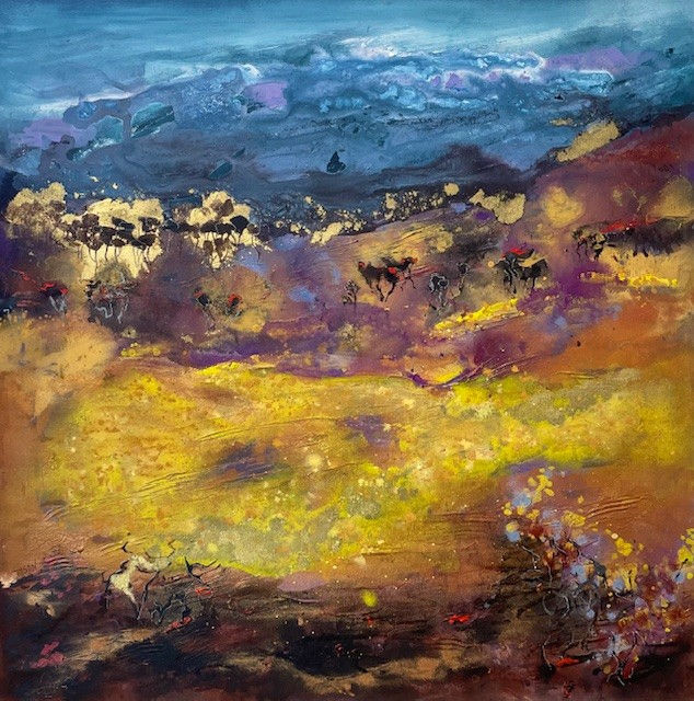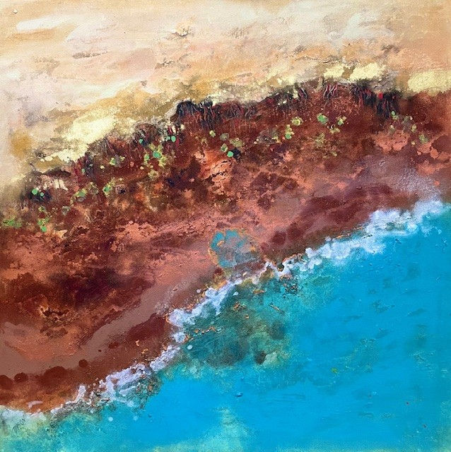 Her love of the Western Australian landscape is apparent through her work; capturing the unique colours and textures, using a variety of techniques in acrylic, Kimberley ochre, pearl dust and gold dust. This has made her aware of all the influences that have formed her own identity, specifically that of the Kimberley, Pilbara and the Northern Territory, Kakadu.
